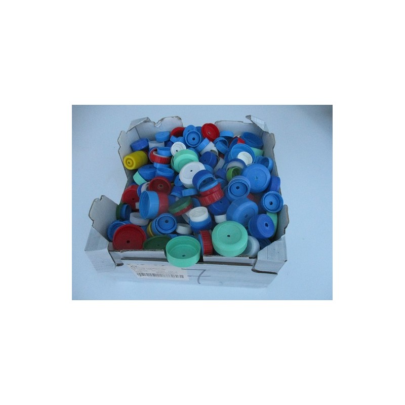 Photo de l'exemplaire . Utilisation de matériel de récupération. Bouchons percés de différentes couleurs et formes. nombre approximatif